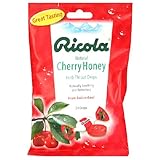 From Switzerland. Great tasting. Naturally soothing and refreshing. Ricola Natural Cherry Honey Throat Drops combine great tasting natural cherry concentrate with soothing natural honey and Ricola's delicious mixture of Swiss alpine herbs. Herbs have been used around the world for centuries. For over 75 years, Ricola has been making pleasant tasting natural herbal products for natural relief of the discomfort due to sore throat and minor irritation due to coughs, hoarseness, dry throat, and loss of voice. Ricola is nature's way of calming coughs and soothing sore throats. Product of Switzerland. Ricola's Natural Cherry Honey Throat Drops combine great tasting natural cherry concentrate with soothing natural honey and a mixture of Swiss alpine herbs. 2 mg of menthol in every drop